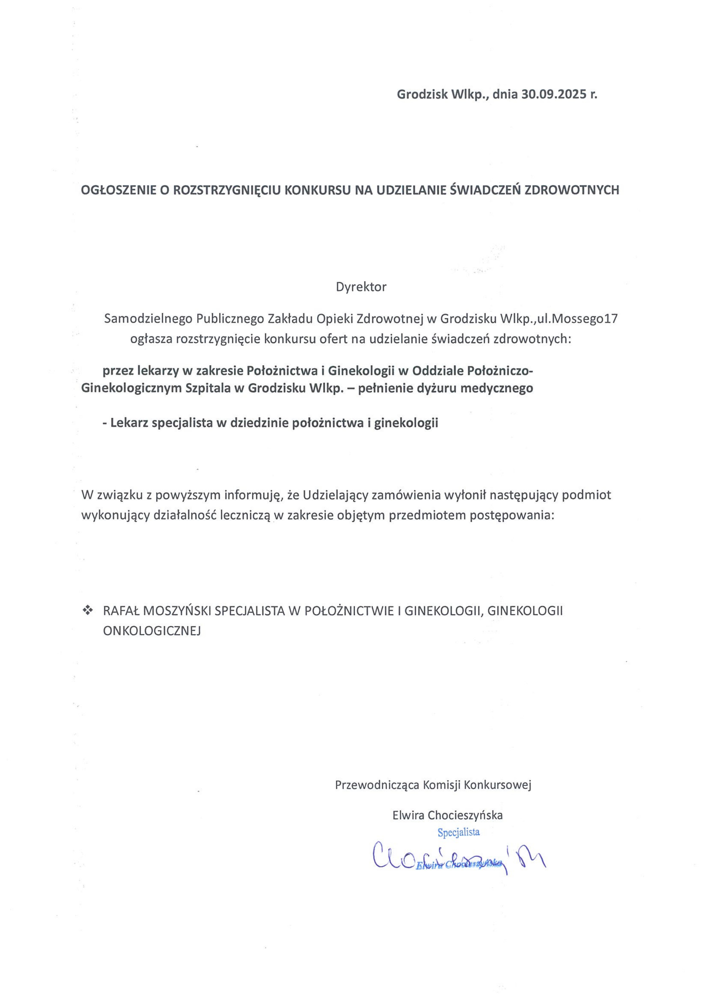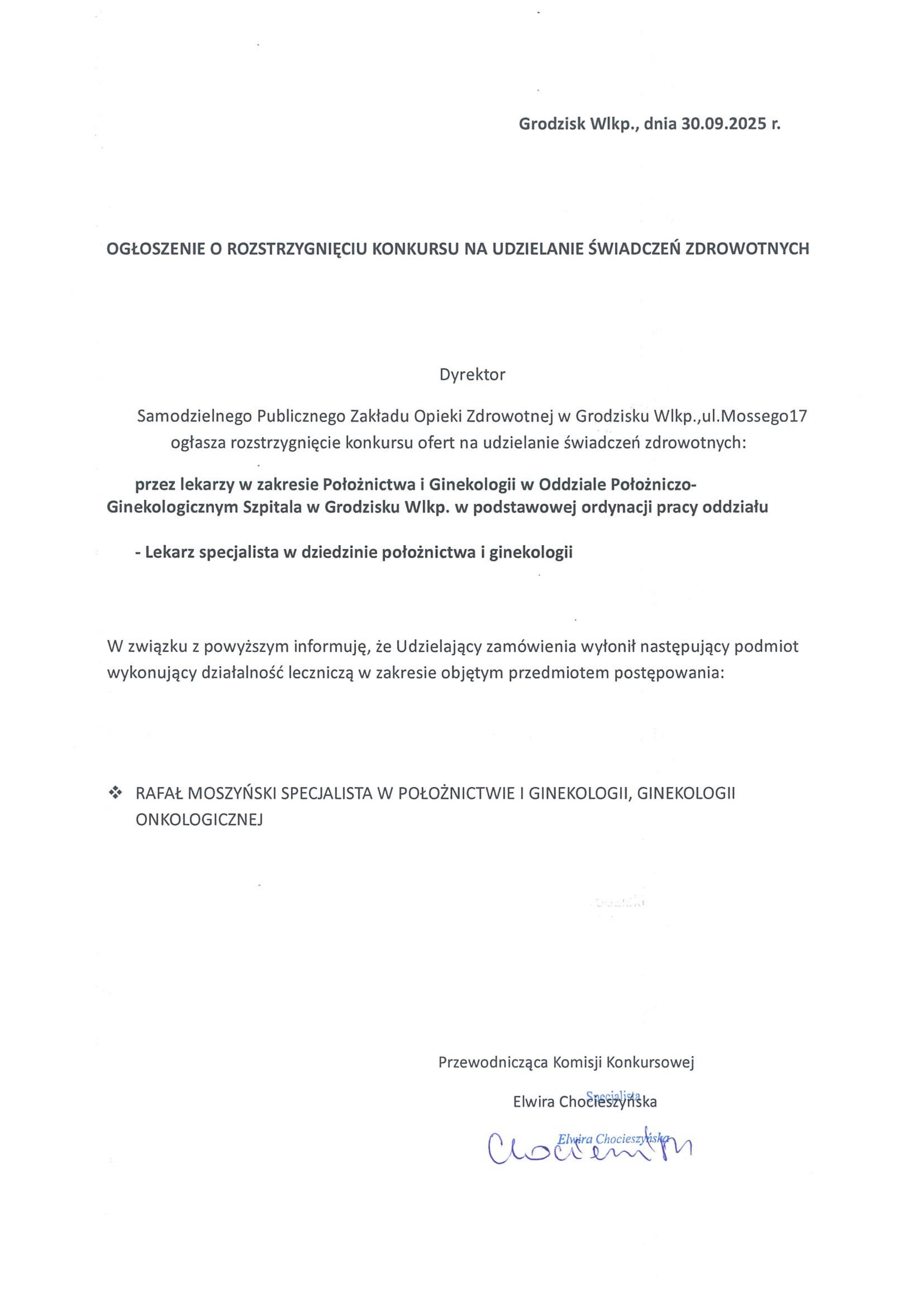 Rozstrzygnięcie Konkursu - Lekarze Oddziału Położniczo-Ginekologicznego